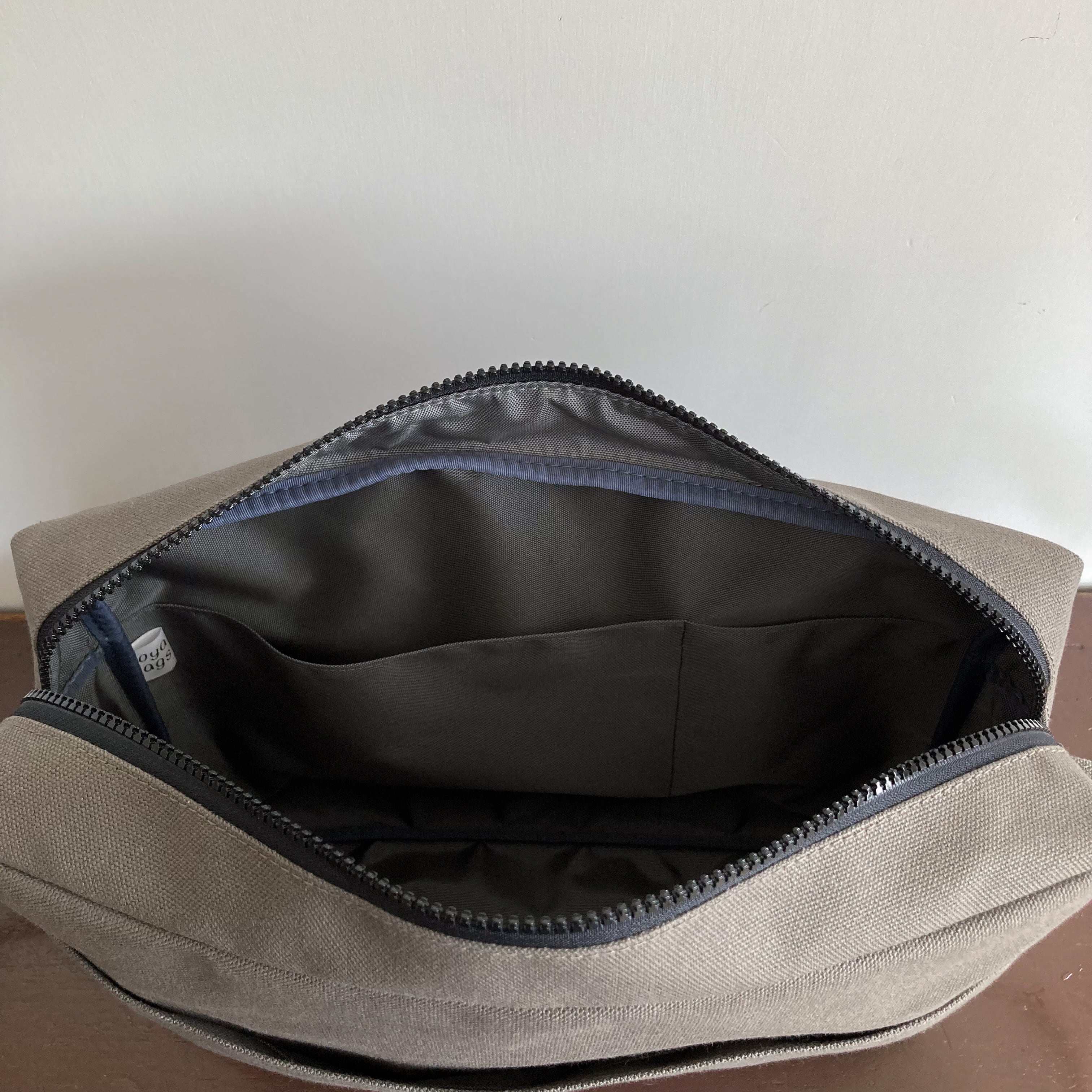 弱撥水加工の国産の8号帆布で製作した四角いショルダーです。