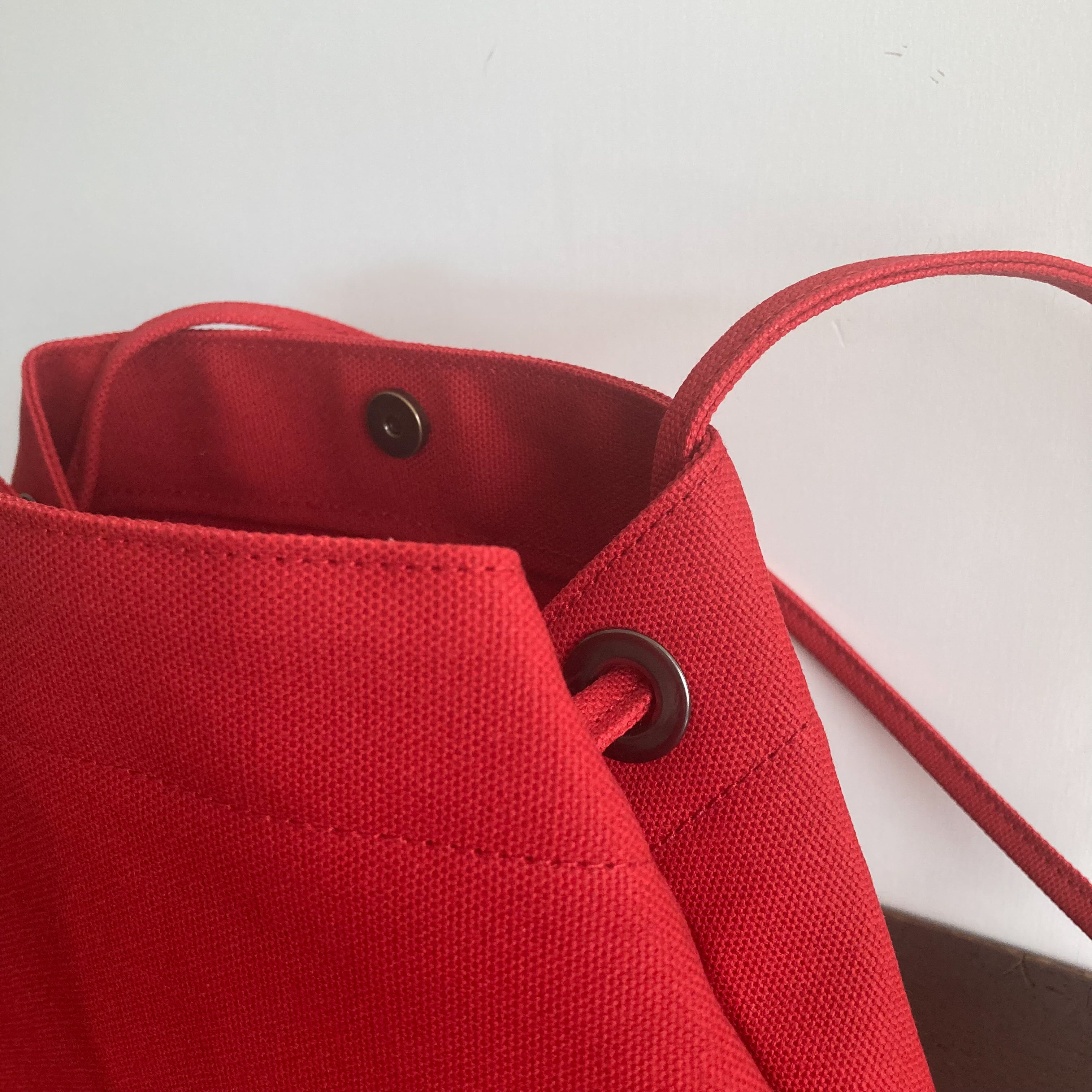※帆布は水に濡れたりこすれたりした場合に色落ち、色移りが起こる場合があります。濡れてしまった場合は乾かして使用してください。色の薄い洋服などはお気を付けください。