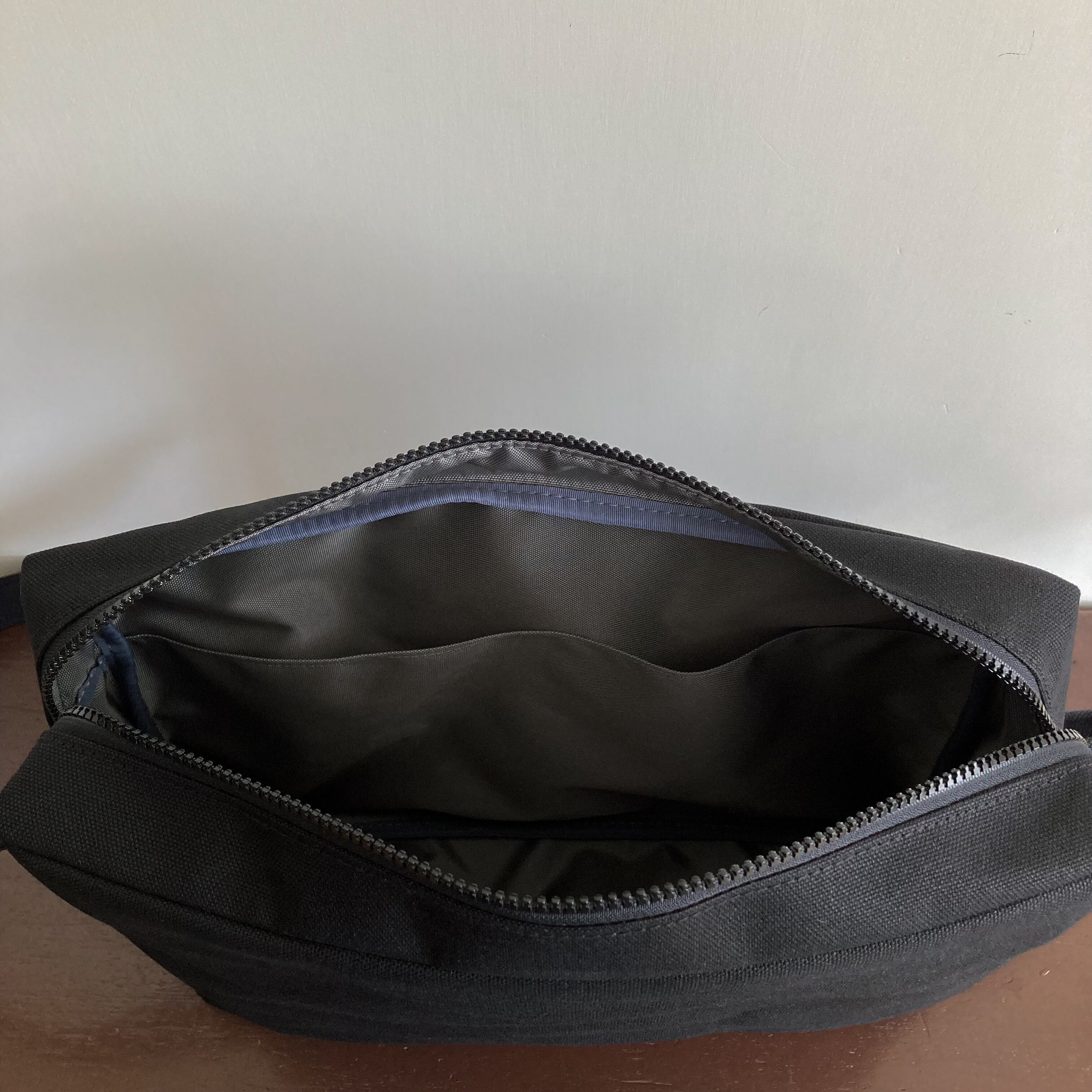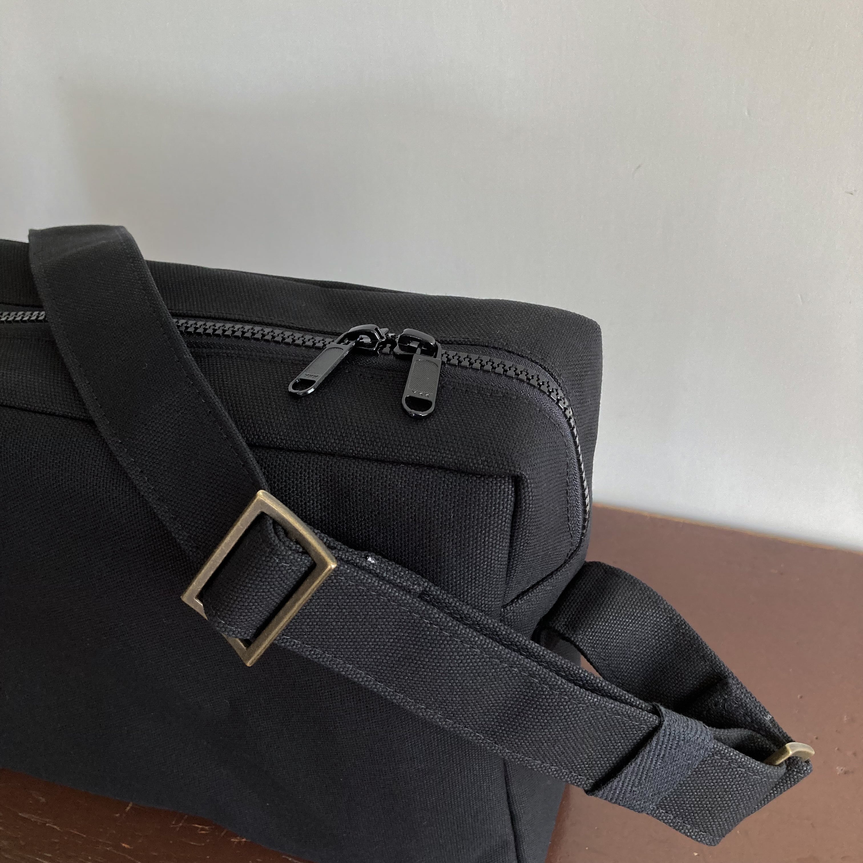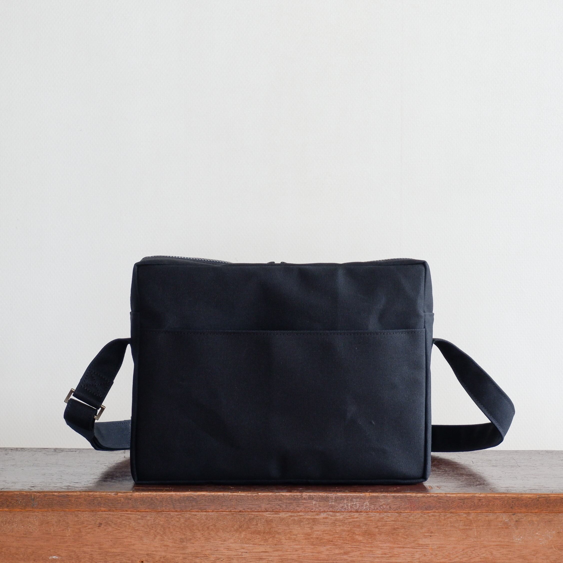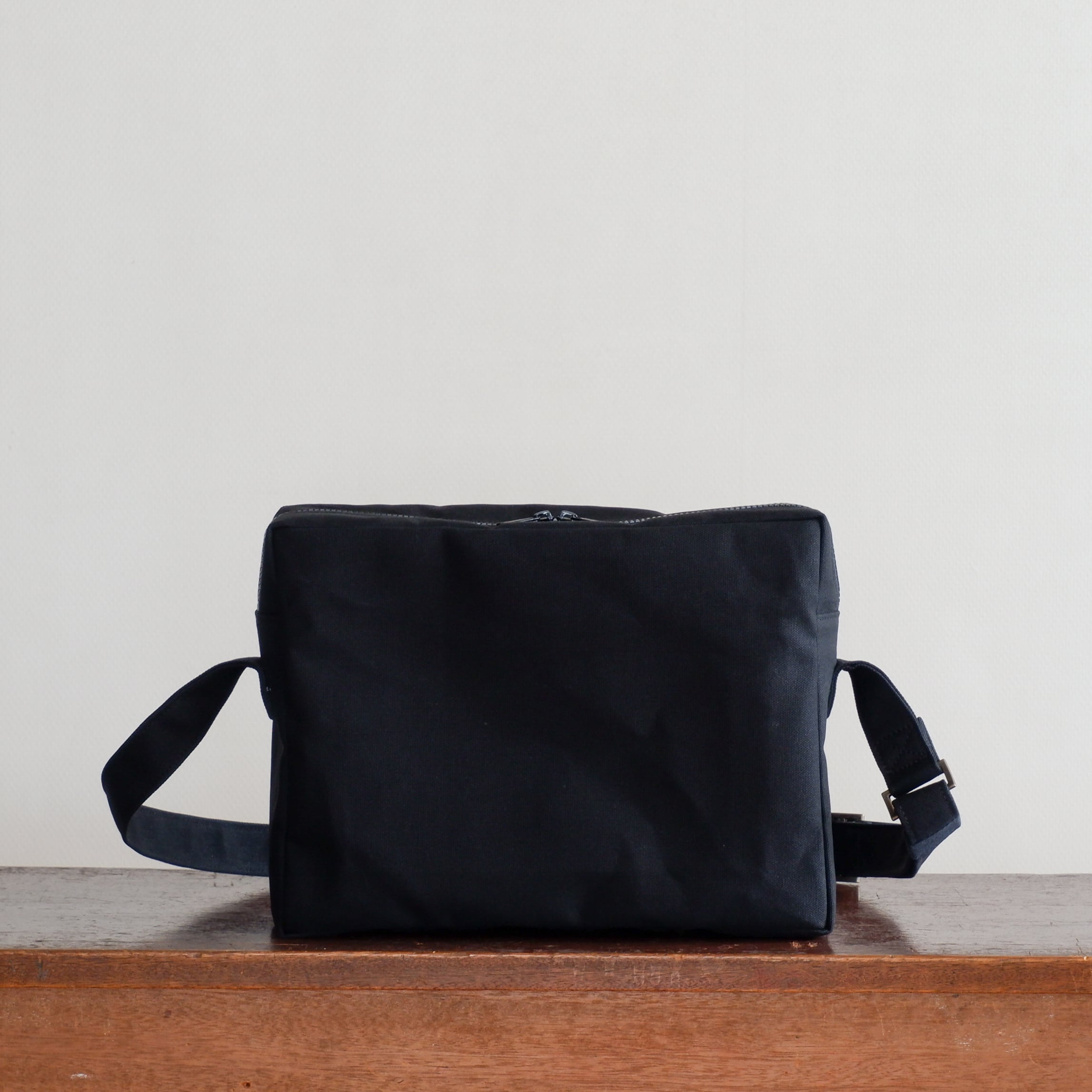弱撥水加工の国産の8号帆布で製作した四角いショルダーです。