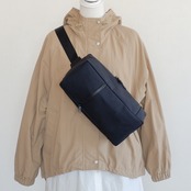 背中にぴったり付かずに背中との間に多少の余裕ができるタイプのボディバッグです。